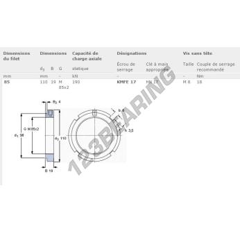 This lock nut KMFE17-SKF with an inside diameter of 85mm, an outside diameter of 110mm and a thickness of 19mm.