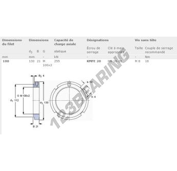 This lock nut KMFE20-SKF with an inside diameter of 100mm, an outside diameter of 130mm and a thickness of 21mm.