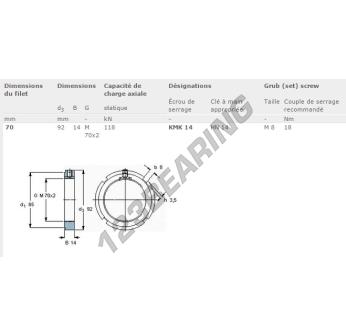 This lock nut KMK14-SKF with an inside diameter of 70mm, an outside diameter of 92mm and a thickness of 14mm.