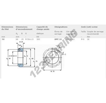 This lock nut KMT10-SKF with an inside diameter of 50mm, an outside diameter of 68mm and a thickness of 25mm.