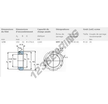 This lock nut KMT34-SKF with an inside diameter of 170mm, an outside diameter of 192mm and a thickness of 32mm.