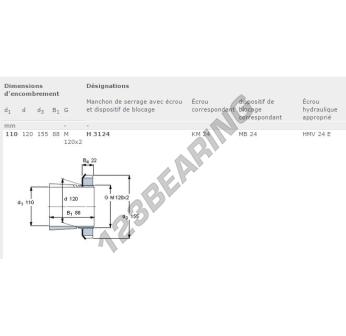 The Adapter Sleeve, known as H3124-SKF SKF, has an inner diameter of 110 mm, an outer diameter of 155 mm and a thickness of 120 mm.