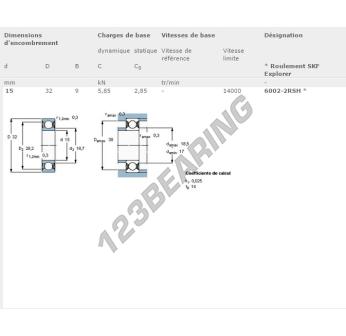The Deep Groove Ball Bearing, known as 6002-2RSH-SKF SKF, has an inner diameter of 15 mm, an outer diameter of 32 mm and a thickness of 9 mm.