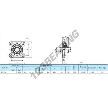 The Housed Bearing - 4 Bolts known as UCF320 Generic has a shaft diameter of 100 mm and a fixing spacing of 242 mm. This part number is produced in cast iron and the tightening type is .