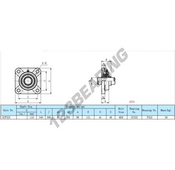 The Housed Bearing - 4 Bolts known as UCF322 Generic has a shaft diameter of 110 mm and a fixing spacing of 266 mm. This part number is produced in cast iron and the tightening type is .