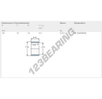 The Bearing Inner Race known by the reference IR12X16X16-SKF SKF has an inside diameter of 12 mm, an outside diameter of 16 mm and a length of 16 mm. It is manufactured in .