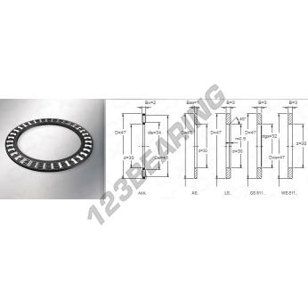 The Axial Needle Roller, known as AXK3047 Generic, has an inner diameter of 30 mm, an outer diameter of 47 mm and a thickness of 2 mm.
