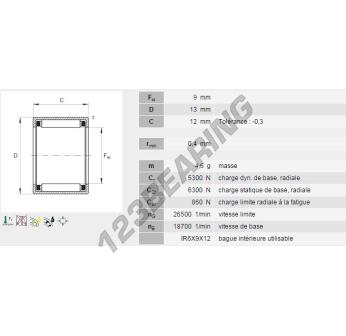 The Drawn Cup Needle Roller Bearing, known as HK0912-B-INA INA, has an inner diameter of 9 mm, an outer diameter of 13 mm and a thickness of 12 mm.