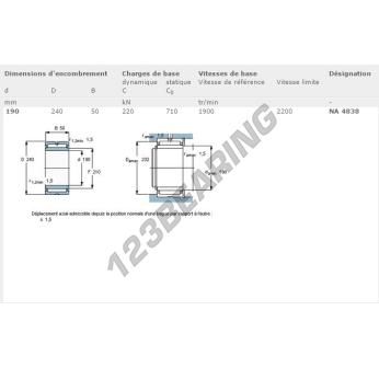 The Needle Roller Bearing, known as NA4838-SKF SKF, has an inner diameter of 190 mm, an outer diameter of 240 mm and a thickness of 50 mm.