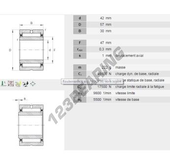 The Needle Roller Bearing, known as NKI4230-INA INA, has an inner diameter of 42 mm, an outer diameter of 57 mm and a thickness of 30 mm.