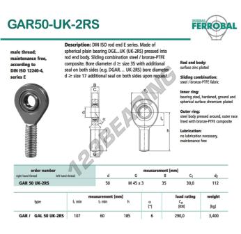 Part number : GAR50-UK-2RS-DURBAL
