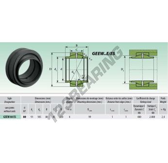 The Rod End Geew known as GEEW080-ES Generic has an inside diameter of 80 mm, an outside diameter of 120 mm and a thickness of 80 mm.