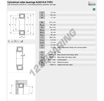 The Roller Bearing, known as NJ2215-E-TVP2-FAG FAG, has an inner diameter of 75 mm, an outer diameter of 130 mm and a thickness of 31 mm.