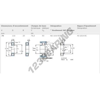 The Roller Bearing, known as NU1014-ECP-SKF SKF, has an inner diameter of 70 mm, an outer diameter of 110 mm and a thickness of 20 mm.