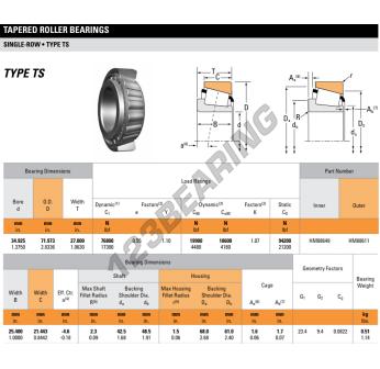 The Tapered Roller Bearing, known as HM88649-HM88611-TIMKEN TIMKEN, has an inner diameter of 34.93 mm, an outer diameter of 71.97 mm and a thickness of 27 mm.